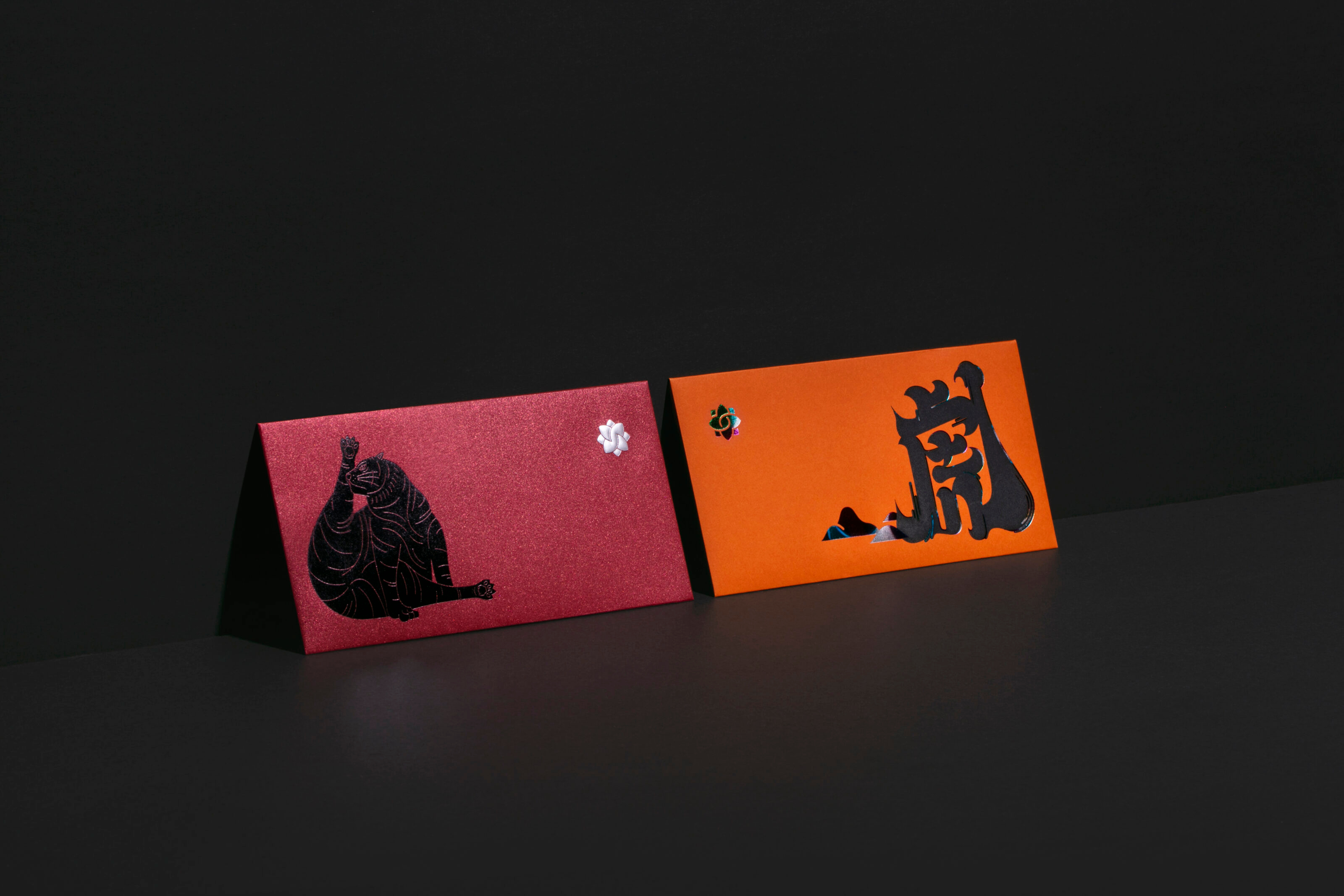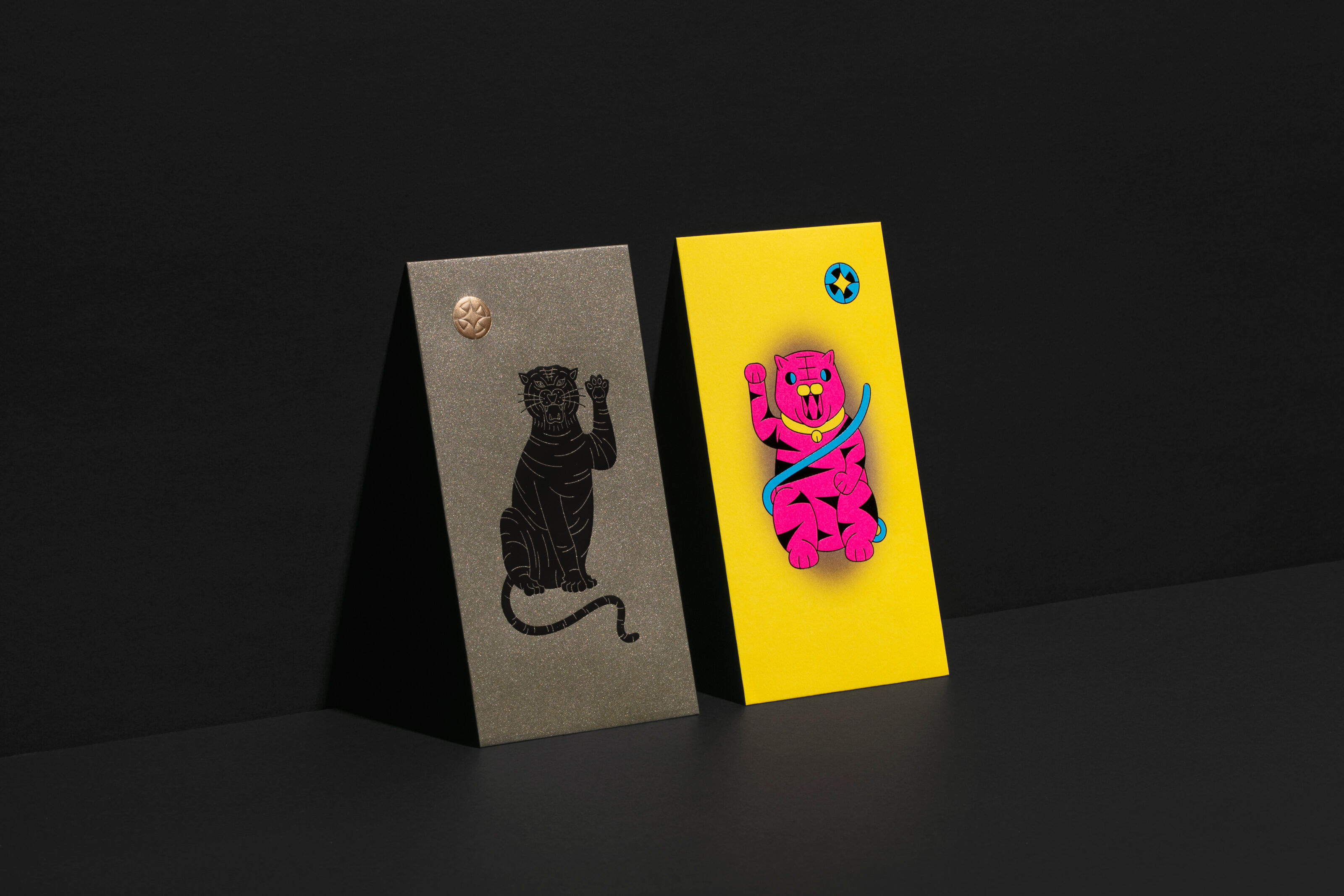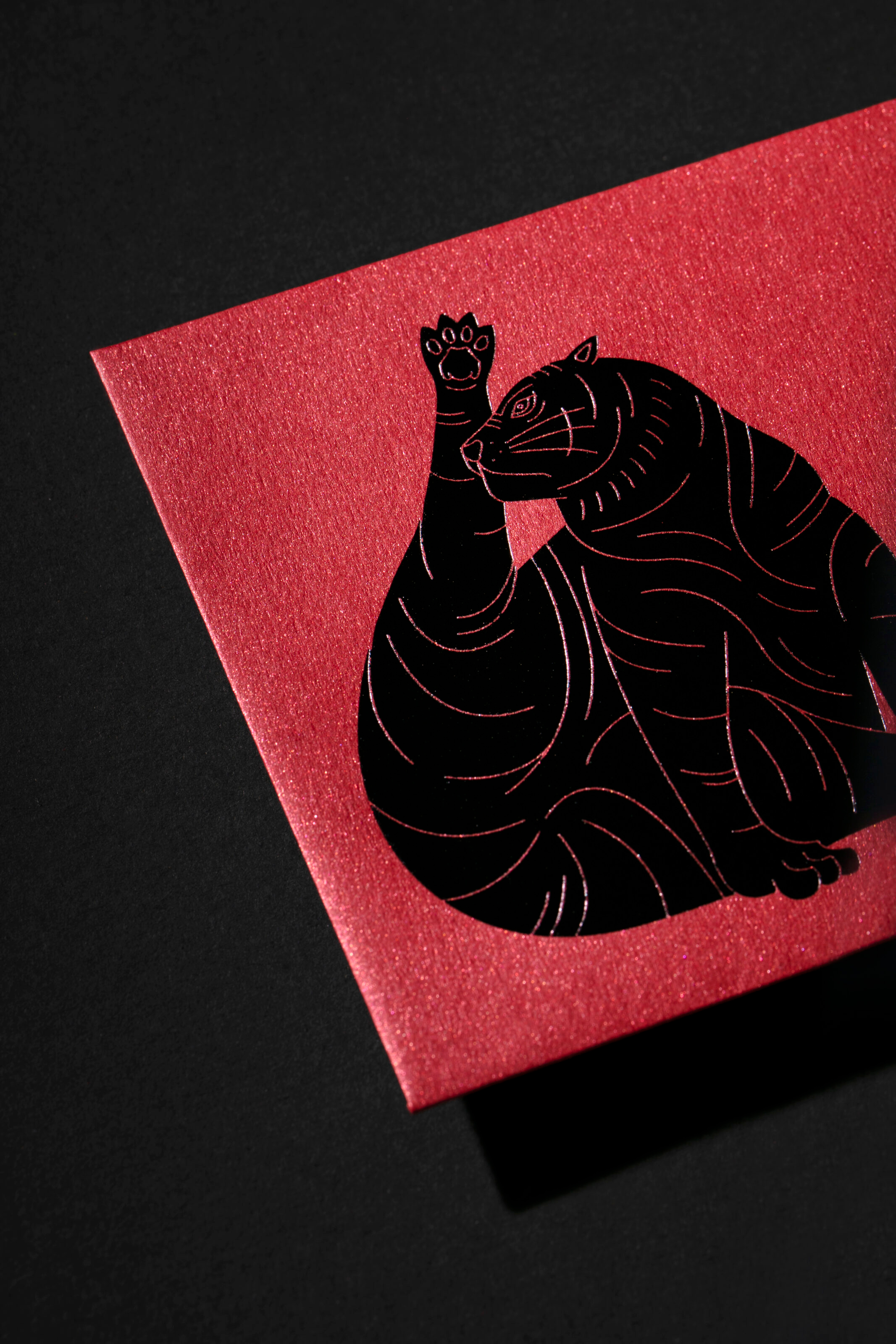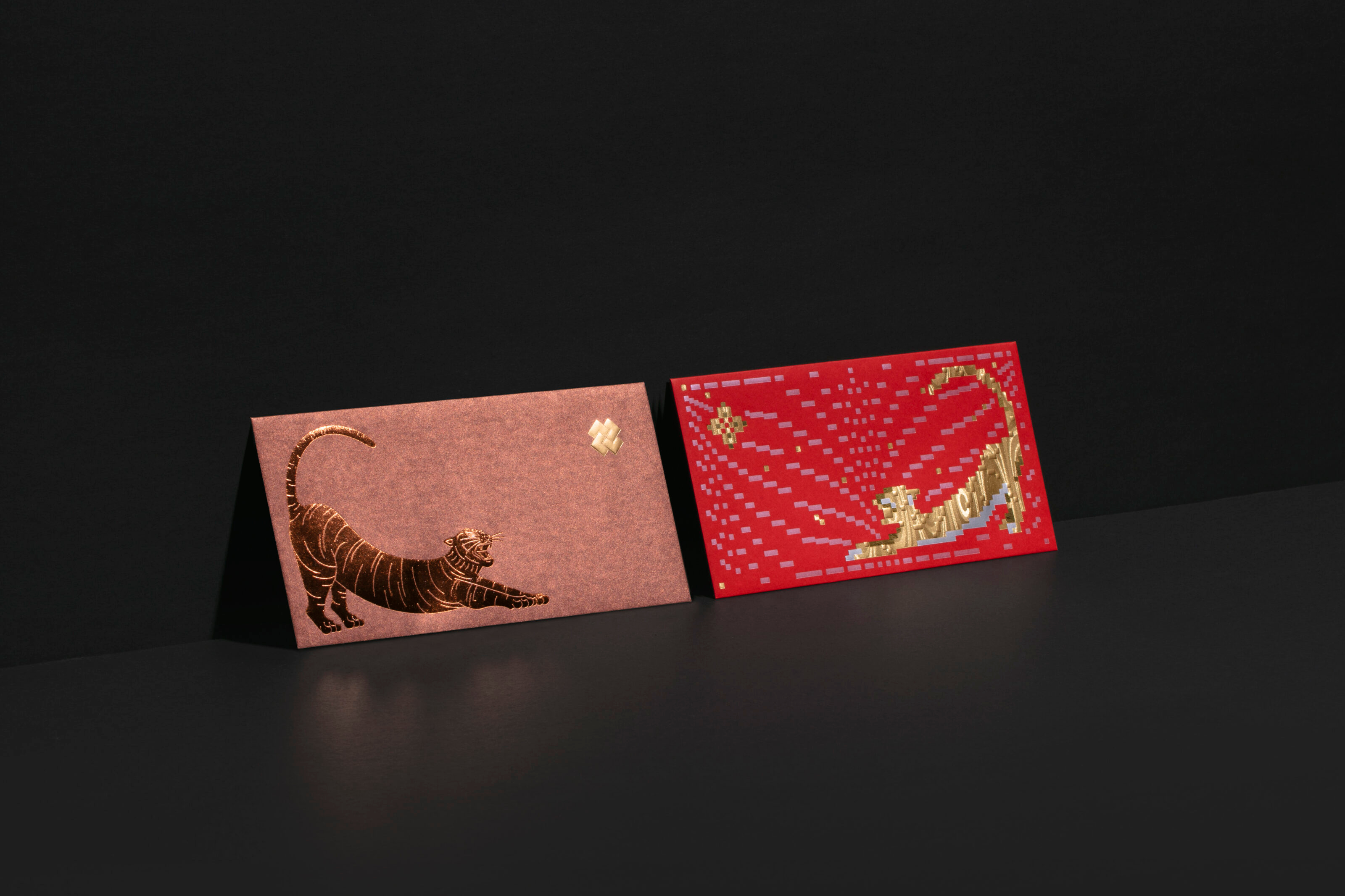 The tigers on the red packet design depict the different posture and action of the cat, such as the gesture of lucky cat and stretching. The different design styles and printing effects created a multiverse of tiger inside the red packet gift box.