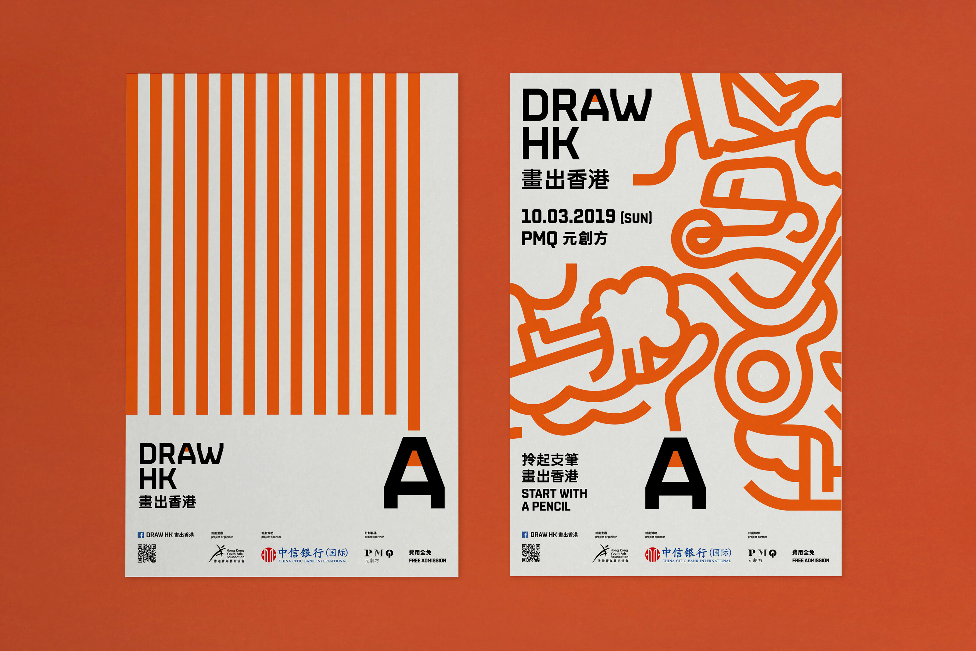 Whatever your age, whatever your talent, everyone can draw. Draw HK is a community art project that encourages public to draw and proves that everyone has the innate ability to wield a pencil creatively. According to Draw HK is an event for public, the visual identity for Draw HK is simply based on a pencil and subtly twist the ‘A’ to a pencil in the name of Draw HK.