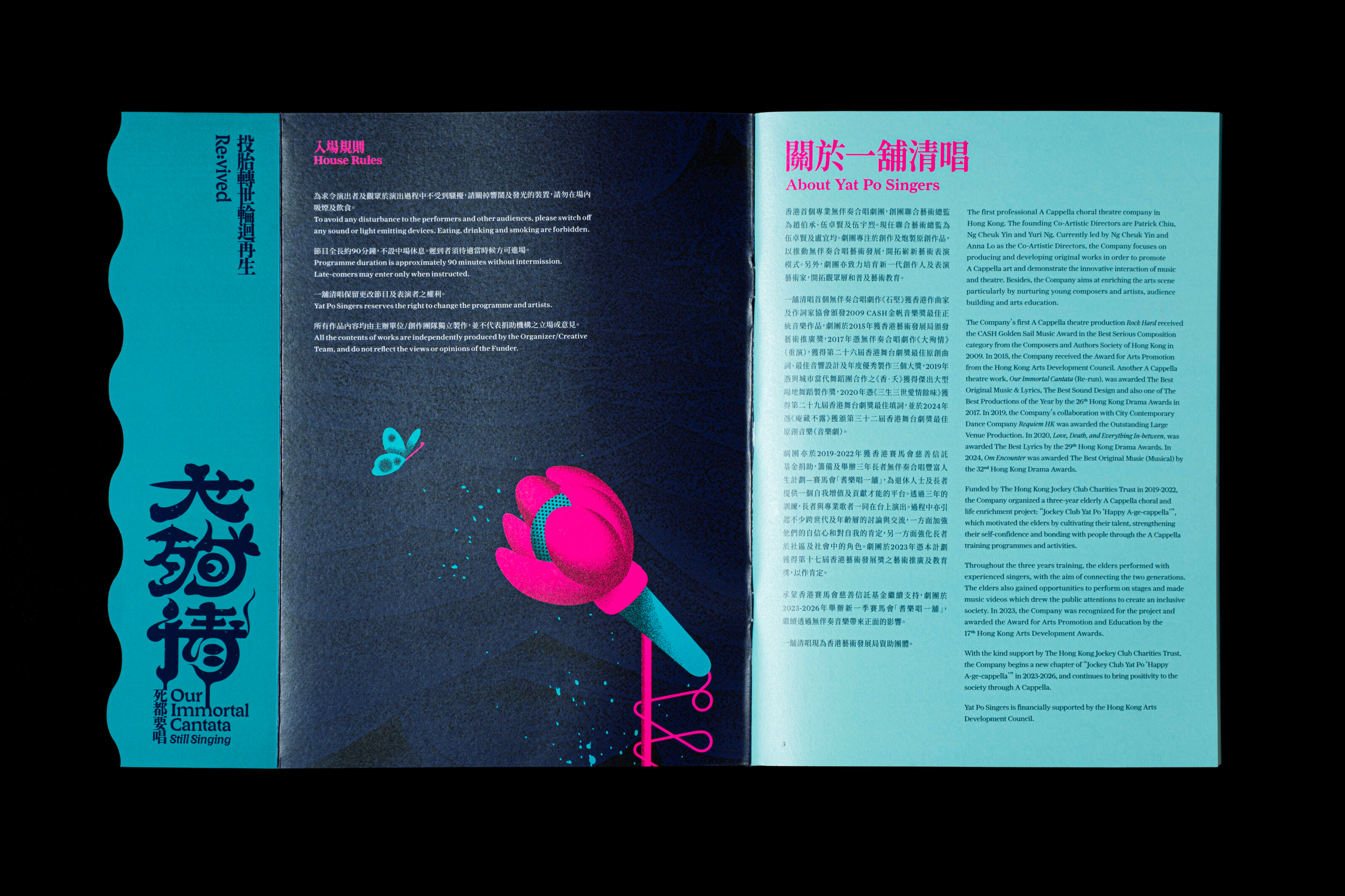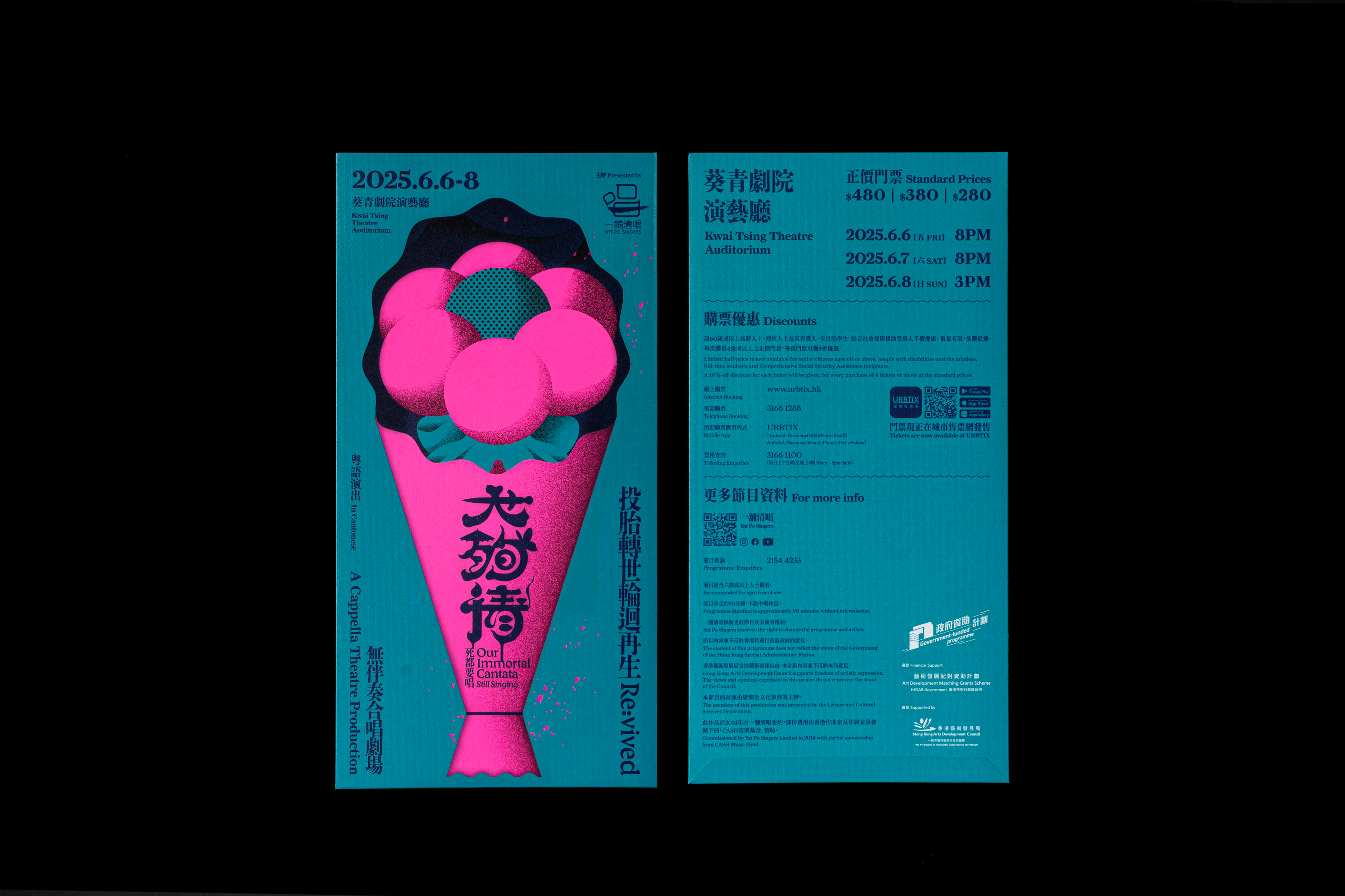 Our Immortal Cantata is a wildly theatrical a cappella contest set in the afterlife. Legendary tragic lovers—The Butterfly Lovers, Romeo & Juliet, Madame Butterfly, Princess Changping and local Hong Kong pair Yu Fa & Sub Yee Siu—compete in “The Greatest Suicide for Love,” a fierce showdown like The Voice. Through soaring song, dance, rivalries, and unshakeable faith in their romantic sacrifices, these ghostly contestants battle to claim the ultimate title: true immortality.